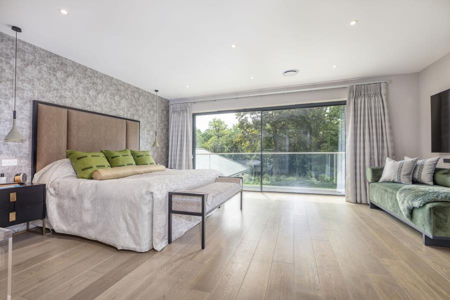 An Exceptional Contemporary Residence in a Private, Leafy Setting Discreetly positioned behind secure electric gates, Woodhill House is a home of rare distinction. With its striking gabled façade, expanses of glass and immaculate landscaped approach, this residence sets a tone of modern refinement from the very first glimpse. Inside, light-filled interiors are defined by clean architectural lines, luxurious finishes and generous proportions, creating a perfect harmony between statement design and everyday comfort. From the dramatic entrance hall to the bespoke kitchen and beautifully appointed living spaces, Woodhill House is as practical as it is impressive - a property designed for modern family life at the highest level.